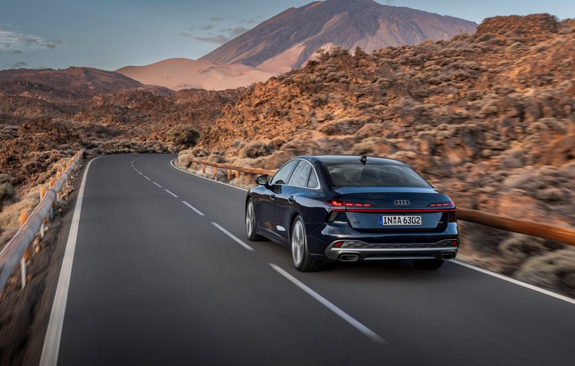 Phần thân xe nổi bật với các đường gân dập nổi chạy dọc từ đèn pha đến đèn hậu, tạo cảm giác xe đang chuyển động ngay cả khi đứng yên. Tay nắm cửa có thể được thiết kế dạng ẩn (flush door handles) để tăng tính khí động học. Đuôi xe được vuốt gọn gàng với cụm đèn hậu LED chạy ngang toàn bộ chiều rộng xe – một đặc điểm nhận diện thương hiệu không thể nhầm lẫn của Audi trong những năm gần đây.